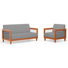 Kit Poltrona e Sofá Varanda Samoa Madeira Maciça com Cordas Náutica Li