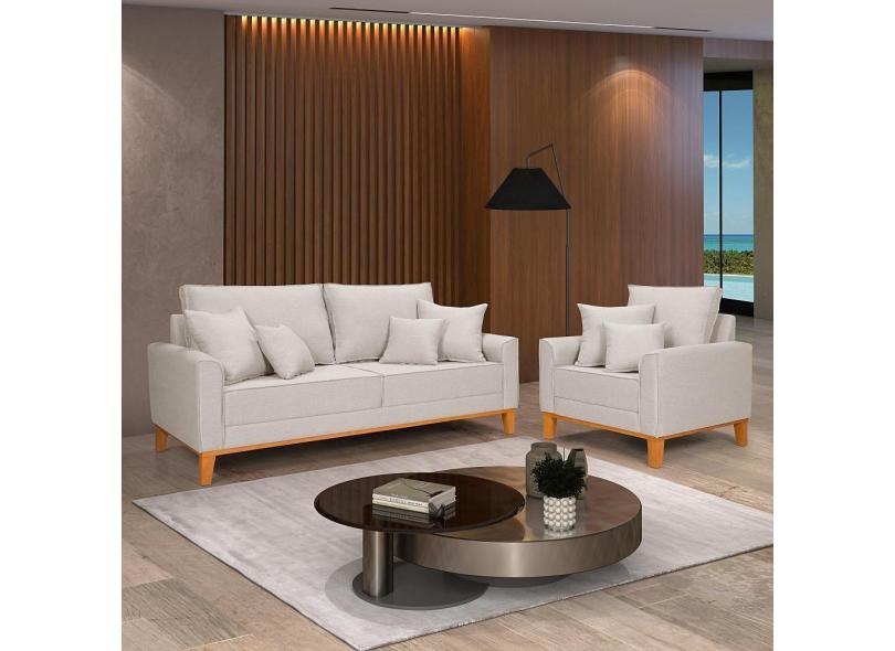 Kit Sofá 1,80m Com Poltrona Beny Pés De Madeira Linho Cru 184