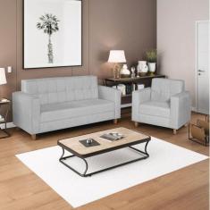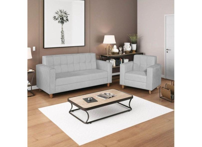 Kit Sofá 180cm e Poltrona em Sintético Dallas Branco