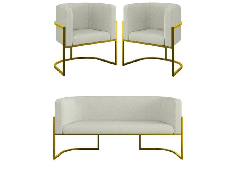 Kit Sofá 2 Lugares + 2 Poltronas Bouclê Gold Bege