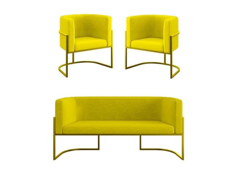 O menor preço encontrado no Brasil para Kit Sofá 2 Lugares + 2 Poltronas Para Recepção Balaqui Amarelo atualmente é R$ 2.023,74.