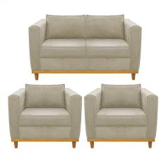 Kit Sofá 2 Lugares E 2 Poltronas Europa Linho Bege Amarena Móveis