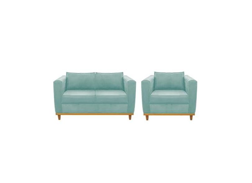 Kit Sofá 2 Lugares e Poltrona Europa Suede Azul Tiffany AM Decor