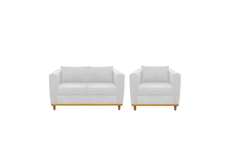 Kit Sofá 2 Lugares e Poltrona Europa Suede Branco AM Decor
