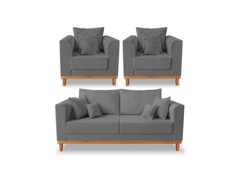 Kit Sofá 3 Lugares e 2 Poltronas Beny Viena Com Almofadas Decorativa S