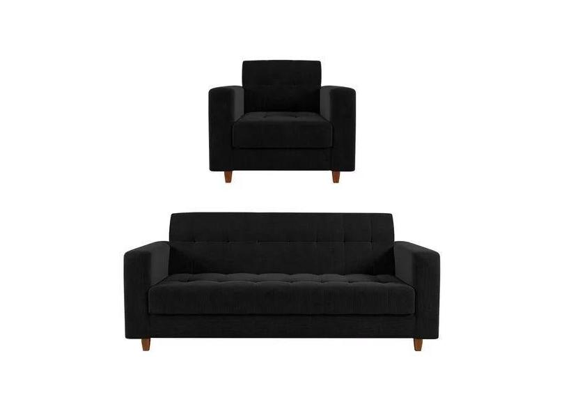 Kit Sofá 3 Lugares + Poltrona Verona - Suede - Preto - Ecotec Decor