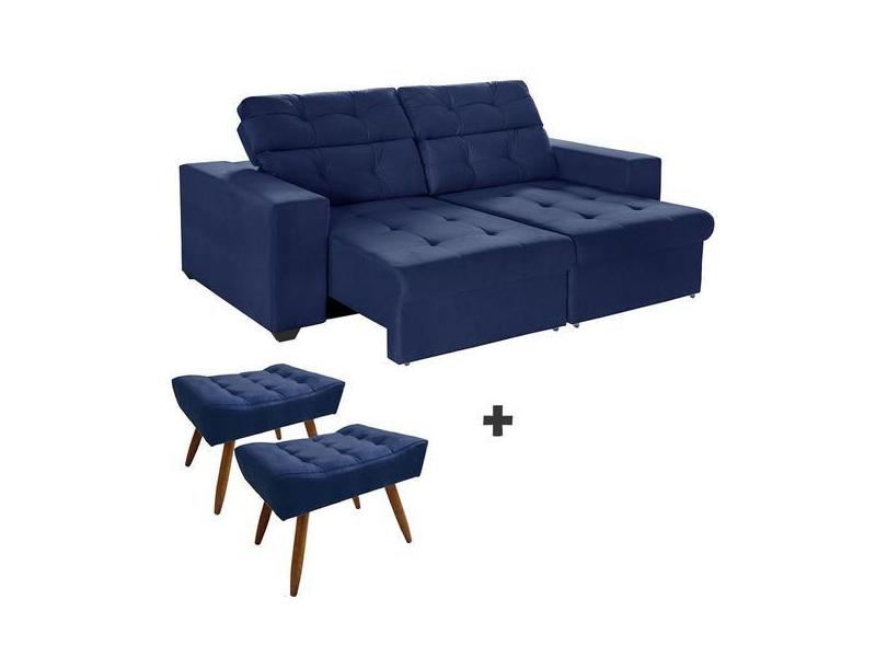 Kit Sofá 4 Lugares New Itália 250cm Azul Retrátil Reclinável, com 2 Pu