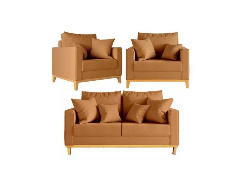 Kit Sofá Beny 140cm + 2 Poltronas Base De Madeira Linho - Ecotec Decor