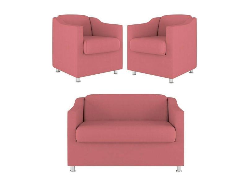 O menor preço encontrado no Brasil para Kit Sofá Namoradeira + 02 Poltrona Tilla Recepção Sala Suede rosa atualmente é R$ 879,74.