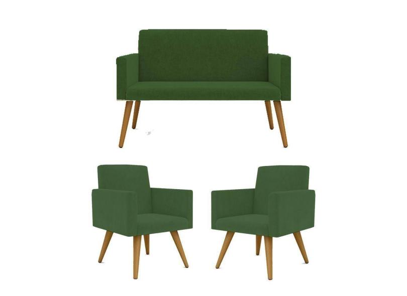 O menor preço encontrado no Brasil para Kit Sofá Namoradeira + 2 Poltronas Sala Estar Balaqui Decor Cor:verde atualmente é R$ 738,94.
