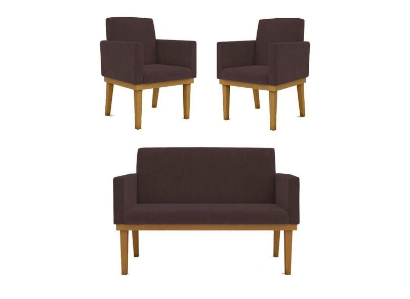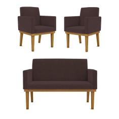 Kit Sofá Namoradeira + Poltrona Reforçada marrom