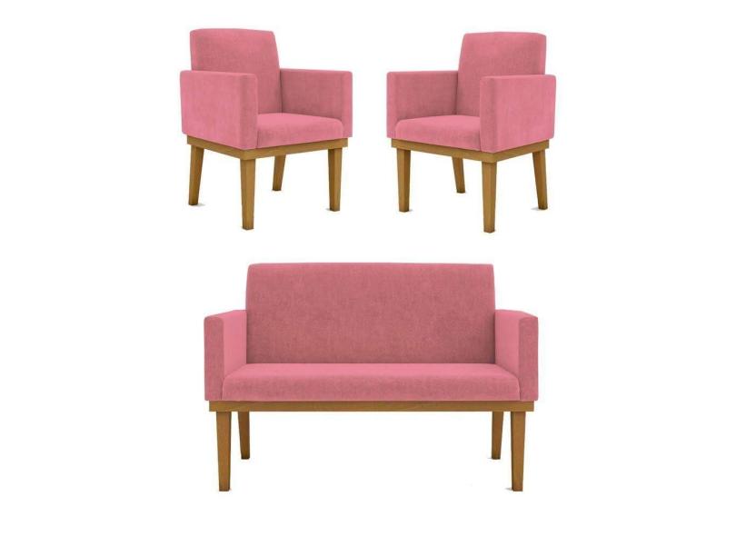 Kit Sofá Namoradeira + Poltrona Reforçada Sala De Estar Cor:rosa
