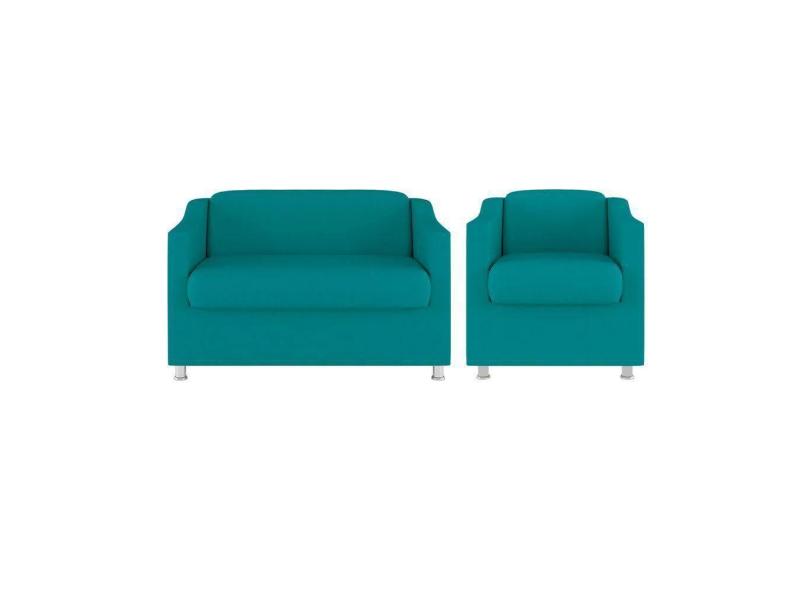 O menor preço encontrado no Brasil para Kit Sofá Namoradeira + Poltrona Tilla Recepção Sala Tecido azul Turquesa atualmente é R$ 659,82.