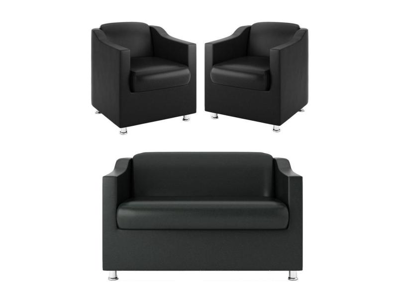 Kit Sofá Namoradeira Reforçada Tilla + 02 Poltronas preto