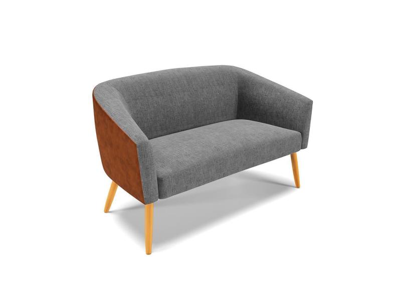 Namoradeira 02 Lugares Stella Corano Nozes com Linho Grafite A26 Pés Palito Castanho - D'Rossi
