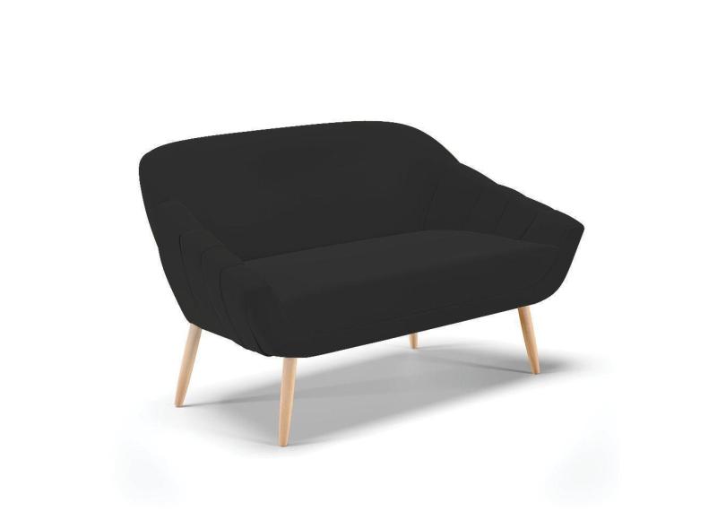 Namoradeira 02 Lugares Veludo Preto Pés Palito Natural