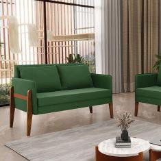 Namoradeira 2 Lugares Lana Suede Verde Base De Madeira - D'rossi