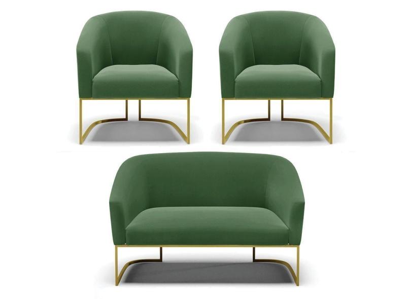 Namoradeira E 2 Poltronas Base Industrial Dourado Stella Suede D03 - D`rossi Cor Verde