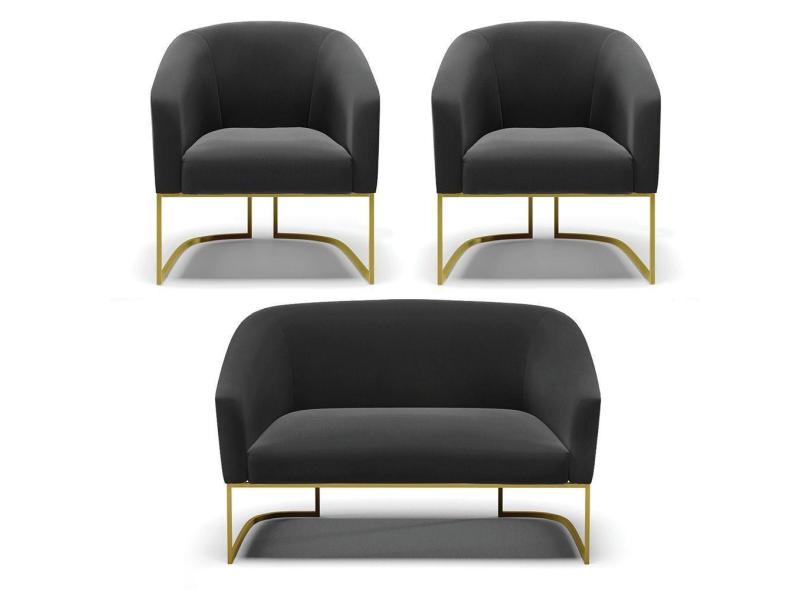 Namoradeira E 2 Poltronas Base Industrial Dourado Stella Suede Preto D03 - D'rossi