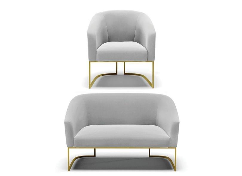 O menor preço encontrado no Brasil para Namoradeira E Poltrona Base Industrial Dourado Stella Suede Cinza D03 - D`rossi atualmente é R$ 1.436,95.