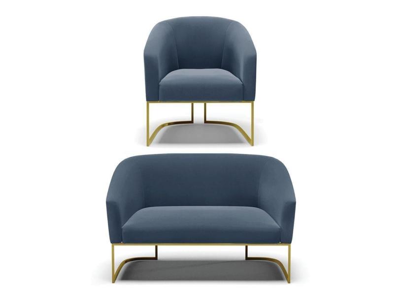Namoradeira E Poltrona Base Industrial Dourado Stella Suede D03 - D`rossi Cor Azul Marinho