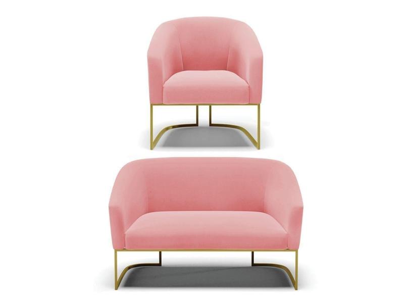 O menor preço encontrado no Brasil para Namoradeira E Poltrona Base Industrial Dourado Stella Suede Rosê D03 - D`rossi atualmente é R$ 1.249,17.
