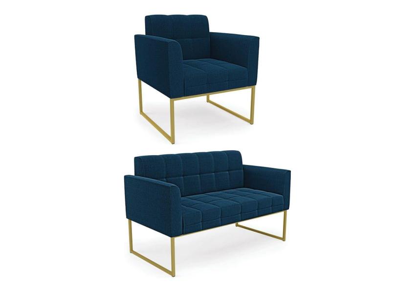 Namoradeira e Poltrona Industrial Dourado Elisa Bouclê Azul D03 - D`Rossi