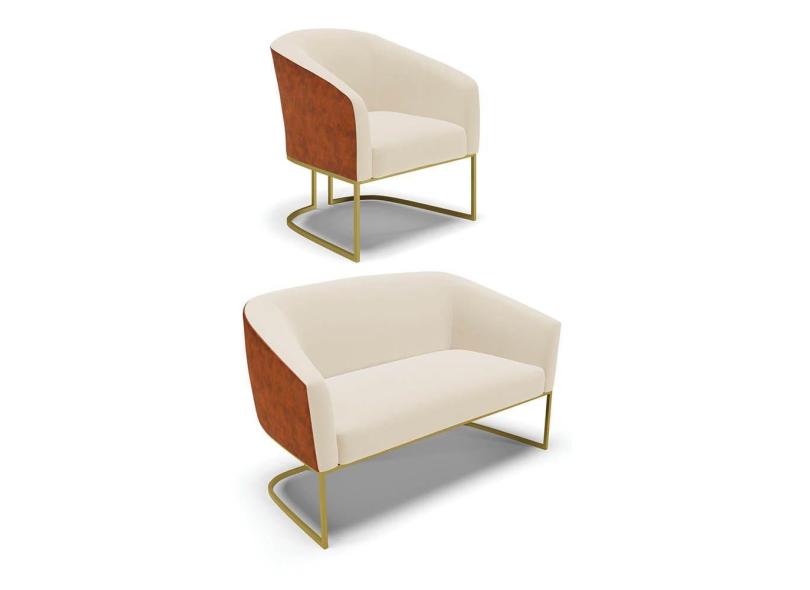 Namoradeira e Poltrona Industrial Dourado Stella Noz/Linho Bege D03 - D`Rossi