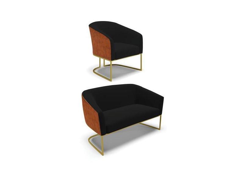 Namoradeira e Poltrona Industrial Dourado Stella Noz/Linho Preto D03 -