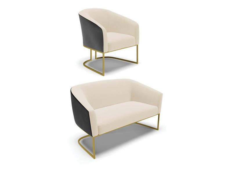 Namoradeira e Poltrona Industrial Dourado Stella Pto/Linho Bege D03 - D`Rossi