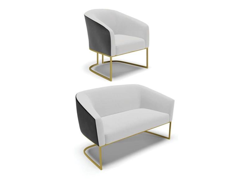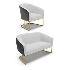 Namoradeira e Poltrona Industrial Dourado Stella Pto/Linho Cinza D03 - D`Rossi