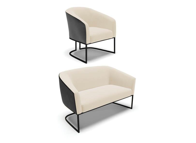 Namoradeira e Poltrona Industrial Preto Stella Pto/Linho Bege D03 - D`Rossi