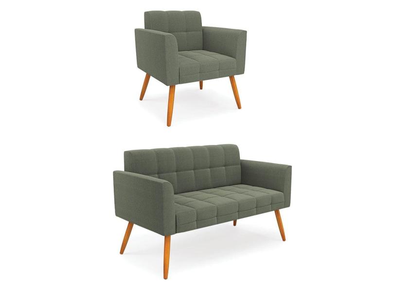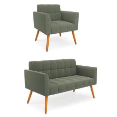 Namoradeira e Poltrona Pé Palito Castanho Elisa Bouclê Menta D03 - D`Rossi