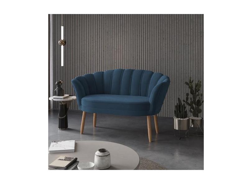 Namoradeira Sofá Pétala 2 Lugares Veludo Azul Marinho - Visalar