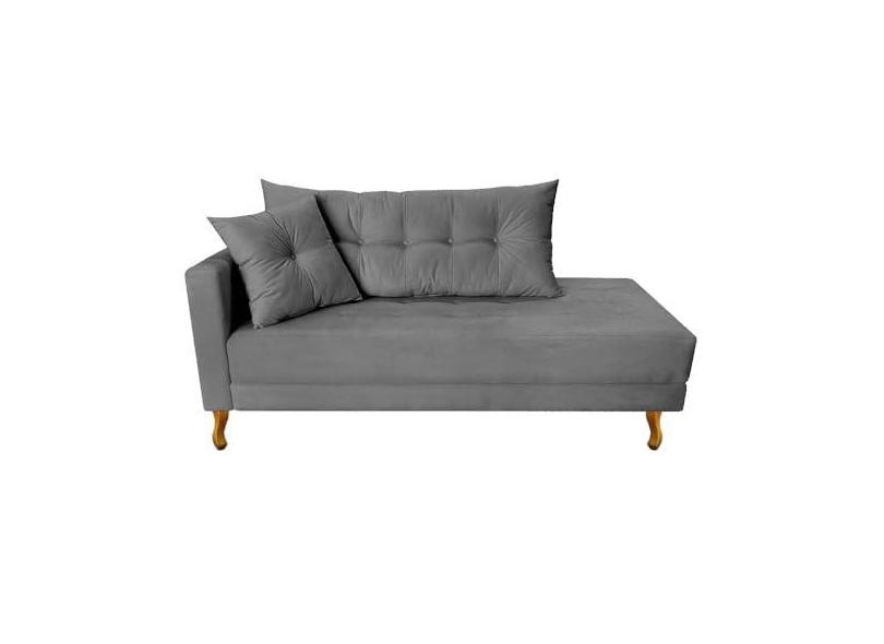 Recamier Azura 185cm com Almofada Lado Direito Suede Cinza - Amarena Móveis