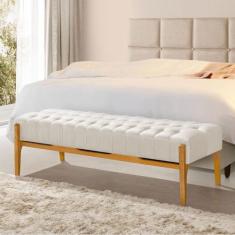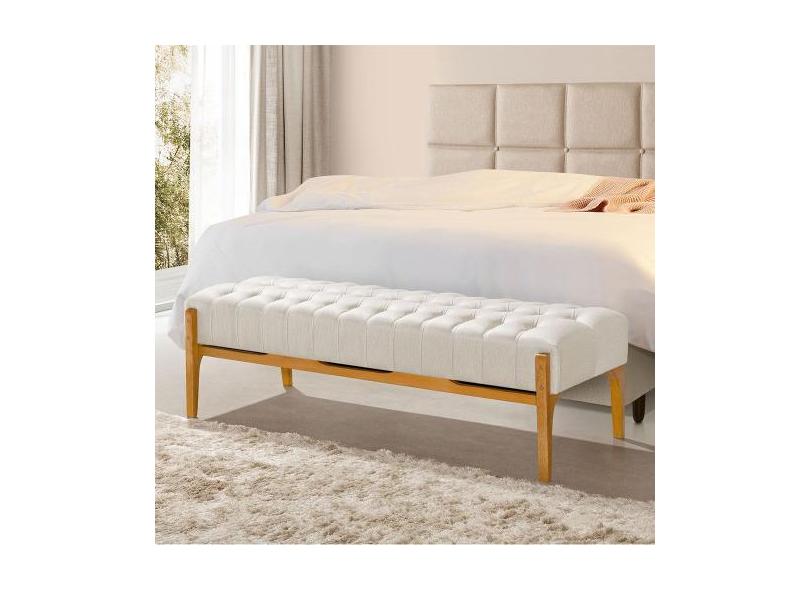 Recamier Base Em Madeira Puerto 1,30M Capitonê Linho Crú - Villa Casa