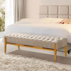 Recamier Base Em Madeira Puerto 1,50M Capitonê Linho Bege - Villa Casa