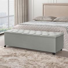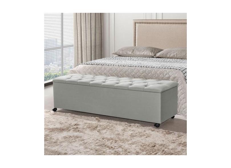 Recamier Baú com Rodízios Cancun 1,30m Veludo Cinza Claro - VILLA CAS