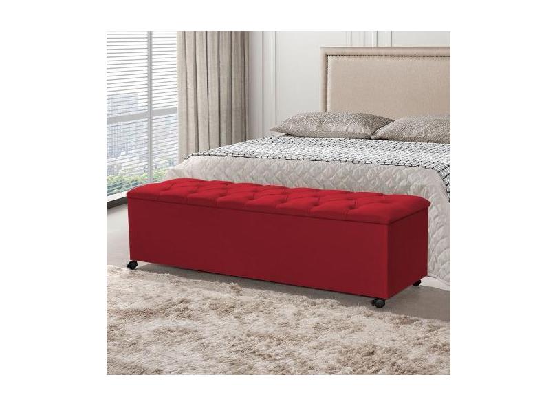 Recamier Baú Com Rodízios Cancun 1,30M Veludo Vermelho - Villa Casa D