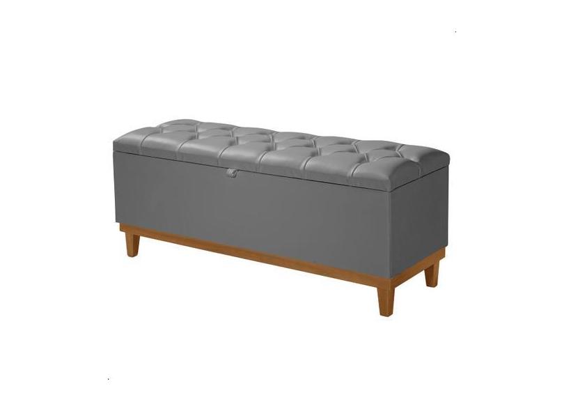 Recamier Baú Dubai Material Sintético Cinza Queen 1,50M Estofado Base
