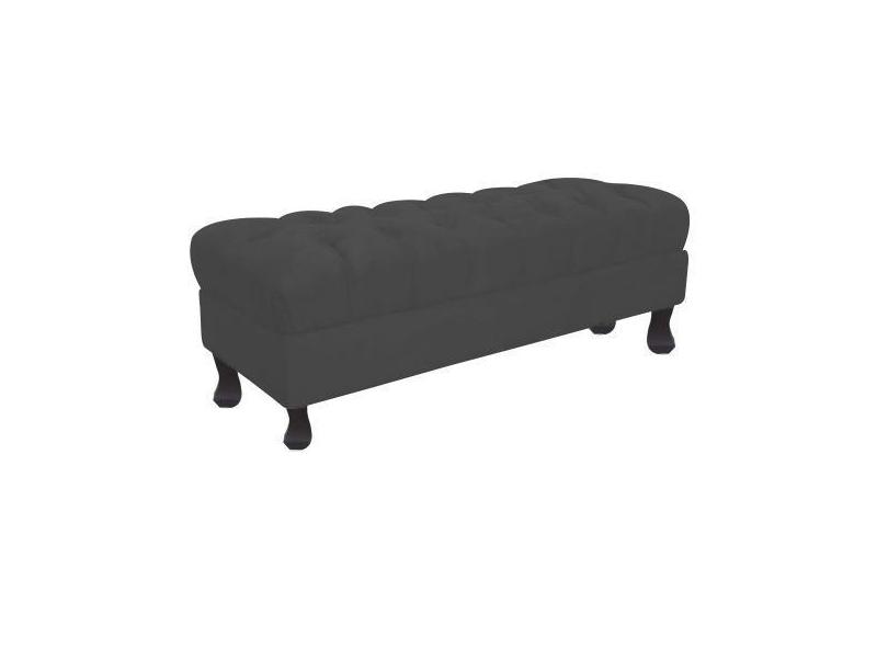Recamier Baú Luis Xv Capitonê Retrô 140cm Suede Cinza Pés Madeira Ms D