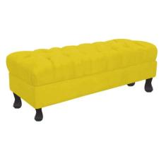 Recamier Baú Luis Xv Capitonê Retrô 160cm Suede Amarelo Pés Madeira Ms