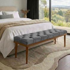 Recamier Calçadeira Apolo Veludo Cinza Solteiro 1,00m Base Madeira Pés