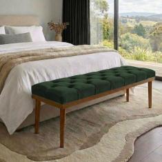 Recamier Calçadeira Apolo Veludo Verde Solteiro 1,00M Base Madeira Pés