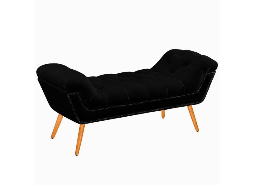 Recamier Calçadeira Casal 140cm Ayla Veludo Preto - Montanaris Decor