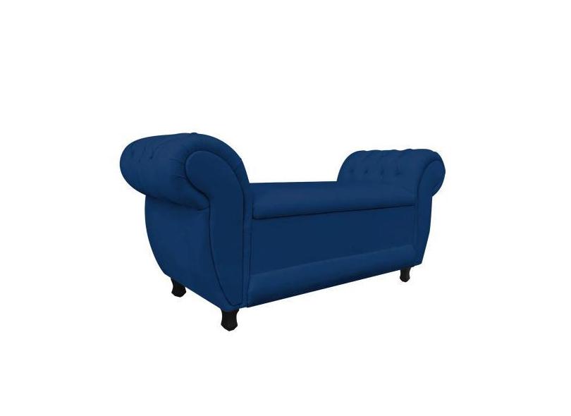 Recamier com Baú Grécia Namoradeira Calçadeira 195 cm Suede Azul Marin
