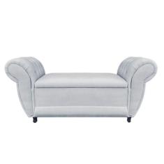 Recamier com Baú Grécia Namoradeira Calçadeira Suede Cinza - D'Rossi