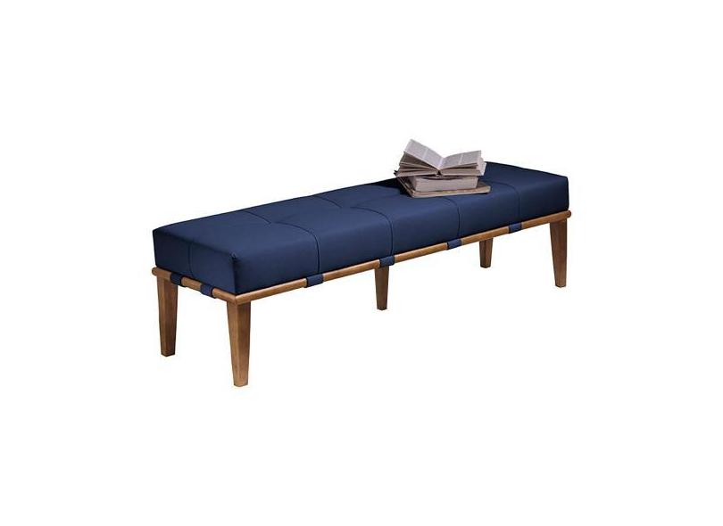 Recamier Decorativo 160cm Martínez Veludo Pés Madeira Azul/Mel G62 - G