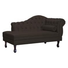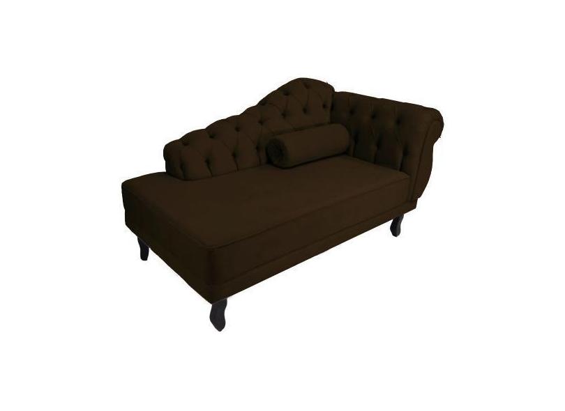 Recamier Decorativo Divã Larissa Lado Esquerdo Couro Marrom Pés Madeir