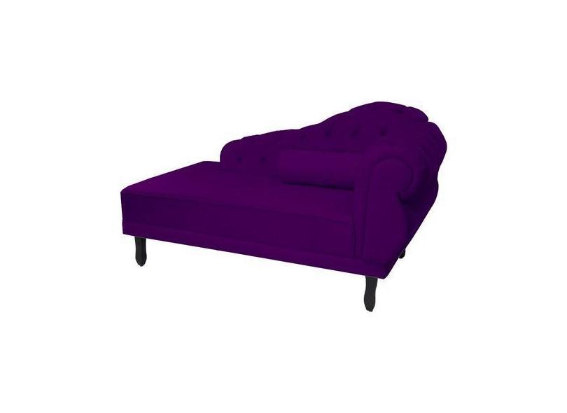Recamier Decorativo Divã Larissa Lado Esquerdo Suede Roxo Pés Madeira